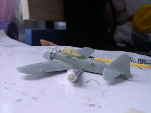 这架飞机爱德美的1/72零战52丙。只是不太想做成里面的日军涂装,想做成美军缴获的零战。构思和资料收集其实源于去年。当时想参加SM的纪念反法西斯胜利60周年的比赛的,但由于种种原因跳票了,只收集了资料和套材、标志等,没开始做。这次参加“爱模型-烽火”杯就重新启动了这个工程。一路做下来本来没什么事的,但在上完主色后发生了惨剧,不小心让大量502滴进了发动机并沿着缝隙流遍了左机身。虽然尽力修补,但发动机排烟管等地方还是破相了,惨啊。