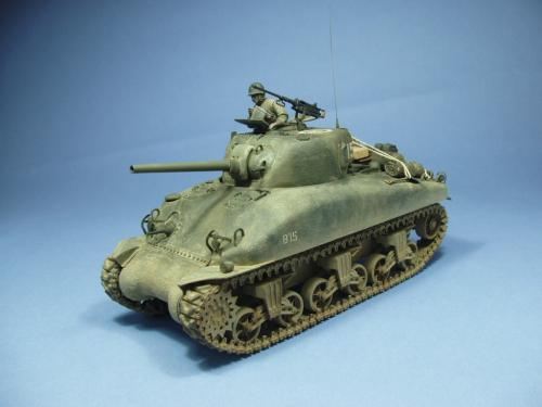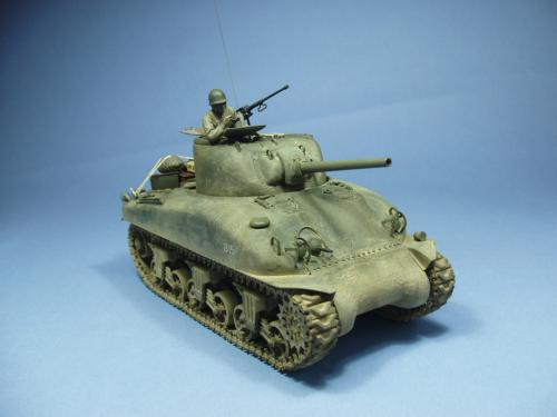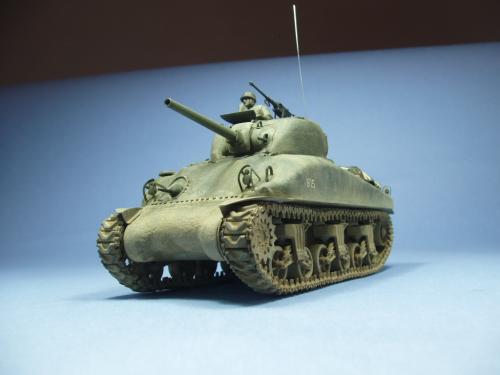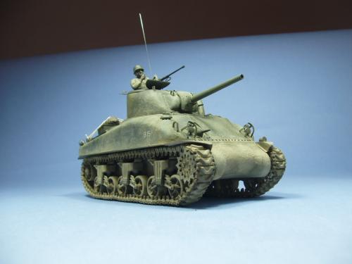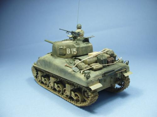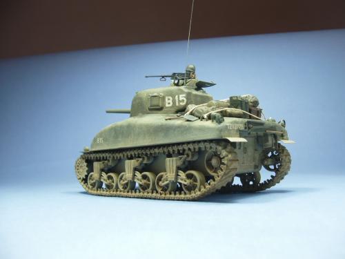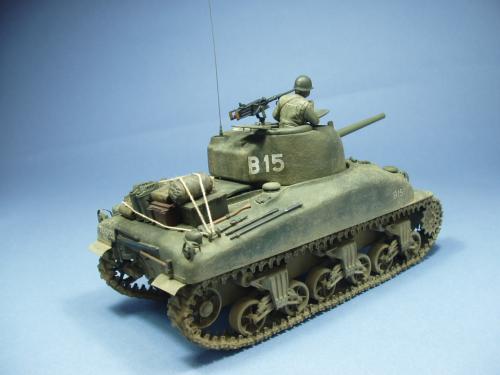 使用龙的6048套件,老熊的炮管,KMY的PE.制作一辆在意大利作战的M4A1早期型.细节参考sonichobby的书,同时请教SM上的傻曼党.色彩用魔王油漆调出,天然土做出其他.坦克上的堆积物用了爱的美,意大利,田宫,和树脂产品,分别上色旧化后堆到坦克上.