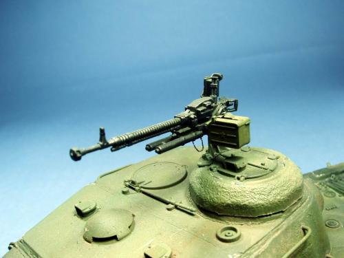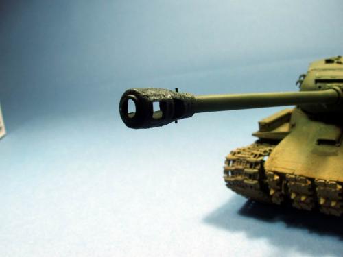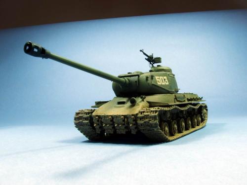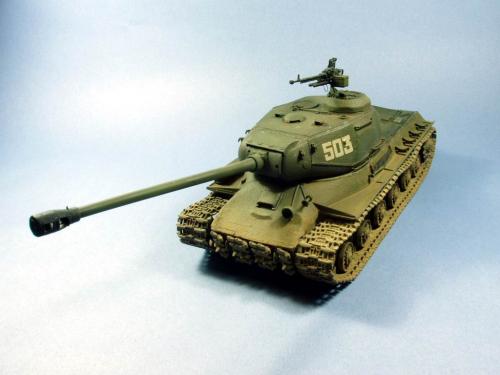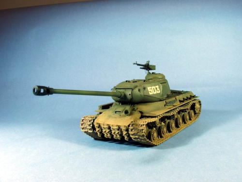 套件使用龙的JS-2M朝鲜战争板.用铝丝替换炮塔上的把手,追加炮口制退器上的两个突起和车灯电线.上色使用魔王漆.在毛毛虫的指导下尝试使用了色粉技法.总的来说还是自己模型制作的一次较大提高.