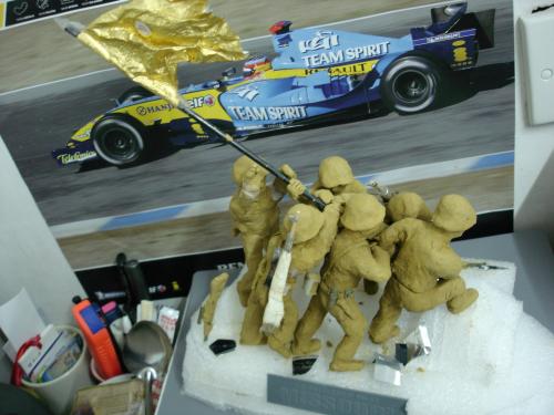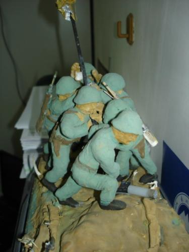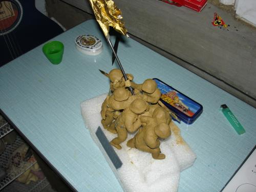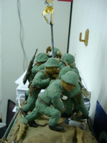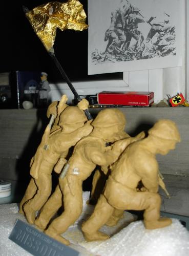 对于这张熟悉的照片一定在大家的记忆中留下了深刻的印象,也给了我制作的动机。事实上,兵刃的比例并不是很严格的,在制作过程中也加上了自己的发挥。但总体的思想还是以历史照片为主的。 兵人主要是用雕塑泥捏成,并用刻刀简单进行了修改。地台是根据兵人的姿势用石膏来制作的。全部完成之后涂的颜色,并用一些简单材料自制了枪械等物件。 其实对于本人来说能否获奖并不重要,主要是希望能够通过这次比赛展示一下我的作品。当然,如果能有幸得到专家们的评选的话更是求之不得的事情了。小弟在此先行谢过。