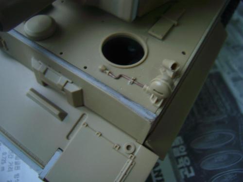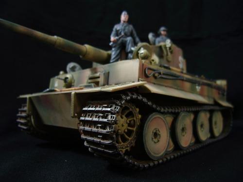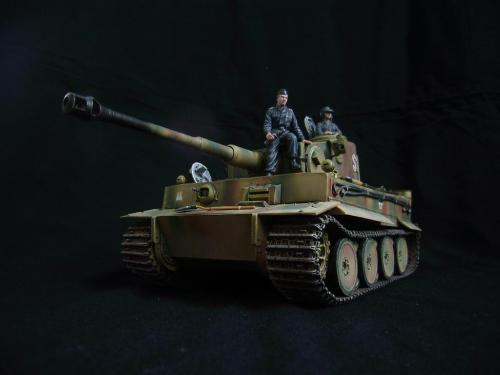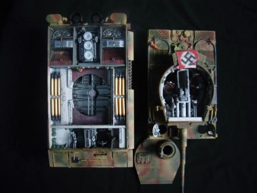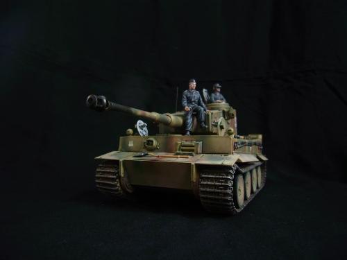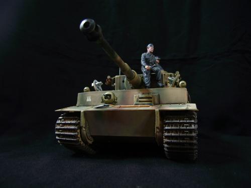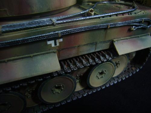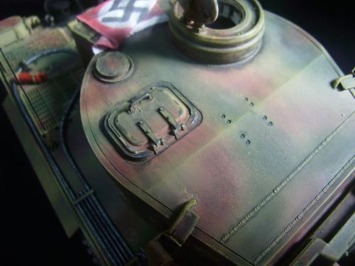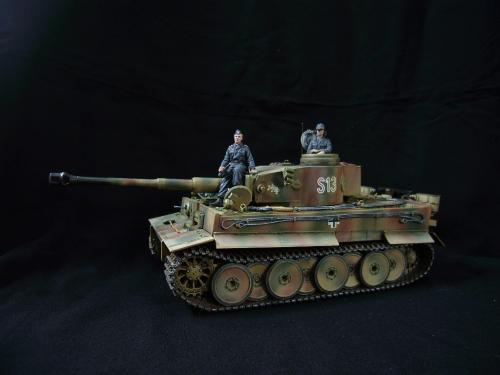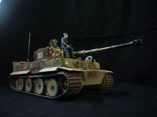 名称:鹰扬虎视(名字注解:形容象鹰那样飞翔,如虎一般雄视。形容十分威武。) 比例:1/35 板件:爱德美 P E:沃雅+自制 兵人:港龙 履带:手钻 颜料:模王 背景:1941年5月26日,希特勒要求PORSHCE(简称POR.)和HENSCHEL(简称HEN.)提供重型坦克的设计方案。 1942年4月20日——希特勒生日,在东普鲁士的狼穴,这两辆样车都出现在了他的面前。42年7月, 在BERKA的坦克学校,两辆坦克都开始了进一步的测试。在测试期间,POR.的样车被淘汰,而HEN.的 样车却非常成功。同月,HEN.的VK4501(H)定型,命名为"虎 I",并且开始批量生产。 在1942年8 月29日,“虎I”第一次出现在列宁格勒的502重型坦克团第一连。本人制作的是隶属LSSAH的SS装甲 团之战术编号为S13的虎式坦克。这是早期型老虎的后期生产型,带有S雷发射器,改进了的边裙。炮 塔是典型的不带有填装手潜望镜,两侧也没有备用履带支架的早期型炮塔。1943年夏天进行的库尔斯 克战役,是战争史上迄今为止最大规模的坦克战。苏德双方逐次投入交战的兵力有400万余人、6万9千 余门火炮和追击炮、l万3千余辆坦克和自行火炮、近1万2千架作战飞机。德军统帅部在该会战中投入 100多个师,占苏德战场上师的总数的43%以上。苏军在这次会战中歼敌30个师,德军损失官兵约50 万人,坦克l500辆,火炮3000门,飞机3700余架。参加库尔斯克会战的20个坦克师和摩托化师,7个 师被歼,其余的也遭到重大损失。 库尔斯克会战对1943年苏德战场上战事的进程和结局有着重大影响。 会战开始后不久苏军的反攻发展为总的战略进攻这一战略进攻。 制作:素组比较麻烦,因为爱德美的图纸有很多错误,考证了大量的历史资料发现内部弹药葙是一排4枚,爱 的板件开模是3枚,这个错误在爱的板件上不太好改,所以就直做了,外部错误比如航向机枪两边的蝶 形螺栓,实车是紧靠航向机枪的,爱的板件开模离的很远,制作的时候切除从新粘接到位,在下面的图 片中可以看到。在上色方面也很繁琐,因为是带内构的虎,一些内构零件需要先上色才能组装。在完成 了所有内部结构以后对车体进行上色,涂装采用三色迷彩。在旧化方面还是老一套,用油画颜料加ZIPPO 油全车渍洗,干后用油画色干扫,最后点掉漆、流锈、粉彩修饰。