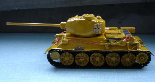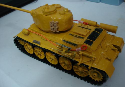 本人对模型的热爱由来已久,无奈囊中羞涩,看着市面上种类繁多的模型套件只能望而兴叹。因此萌生了了利用以前制作模型所剩下的边角料再加上自己身边的材料来制作模型的想法。于是乎,经过了将近两个月的艰苦奋斗,我把收集来的各种材料进行仔细加工,再加上从前剩下来的各种零件,配合自己的创意,直到今天,我的这辆T-34终于下线了,呵呵。献给大家来汇报一下吧,还请各位大侠不吝赐砖才是!值得一提的是,俺的这台车比例是1:35,用的都是各类废品,总共的成本不超过一块钱。大家能看出来都用哪些材料了吗? 当然,和坛子里那么多前辈精美绝伦的作品相比,我的作品的确相形见绌。一没有考证,二没有套材,不过凭着自己的一点热情而已.不过,正所谓“敝帚自珍”,这一辆战车也是我藏品中的新成员了,呵呵。而且本人在制作过程中也比较注重细节的塑造,通过各种材料自制了小工具、发动机防爆网,特别是对于战车尾部的铆钉也下了大功夫进行制作,力求完美啊 正好赶上了这次比赛,小弟也斗胆发一下自己的这个新作品,不为评奖,重在参与。只为得到专家们的意见和建议,也请各位模友多多关照啦!