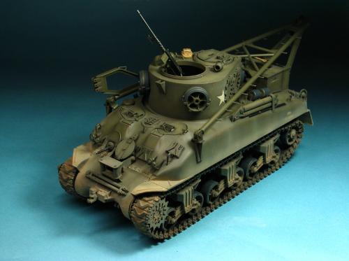 制作手法还是一贯的传统,底漆检查,上主色,偏差,笔涂胶轮,淡色滤镜一遍,天然土,掉漆,流锈等。行走部分及车体前后使用补土作出泥土堆积状。