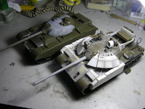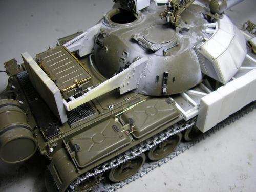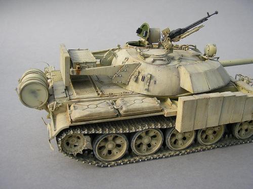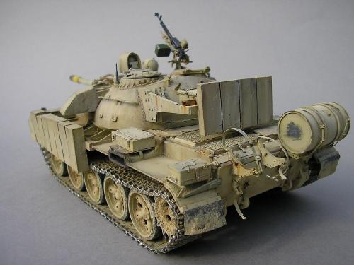 田宫T55 沃雅铜管 胶版 伊拉克T-55重装甲型 伊拉克改进的T55模型。此种改进型最大的特点是车体和炮塔安装的附加装甲,象古代武士一样威武。 模型主体套件选用田宫的的T55A,改造件是使用KMY的树脂套件(完全错误,根本没必要买)加自己修正而来,另外使用了蚀刻片来提升细节。同时还使用了金属履带。管线使用沃雅的铜管,非常好处理容 基本上模型主题的组合非常舒服,但是树脂部分就不能忍受了,没有一个地方是正确的。又得自己全部动手改。。再次召唤无敌神奇的胶板~ 这样的T55已经和一般的T55外型上差别非常大了,威武的外型仿佛守卫巴格达的巴比伦勇士. 愿真主保佑伊拉克人~