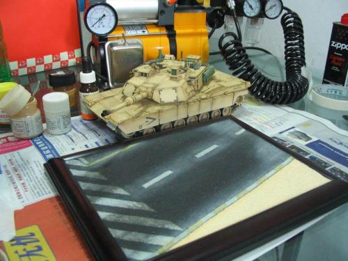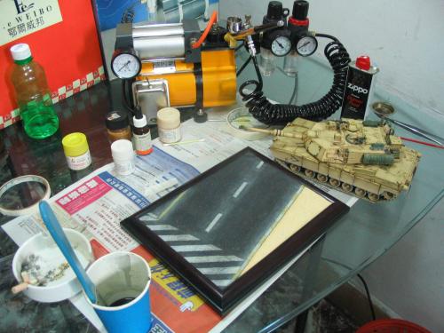 龙的版件,魔王漆,素组难受,动用强力胶矫正版件变型,前面版胶板制作,包裹为塑料口袋制作,其他附属品使用田宫套件 主色为沙漠黄加白加,再调浅喷色差,强洗后滤镜,用天然土表现泥土效果,手点掉漆, 地台石膏制作用广告色颜料上色旧化,麻绳栽草。重在参与,恳请请大家批评。