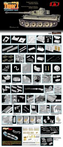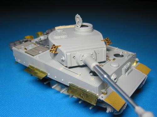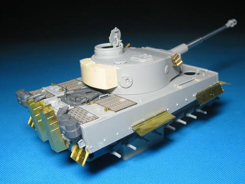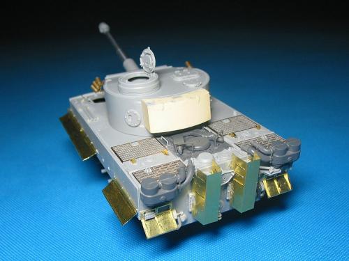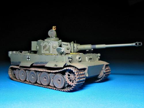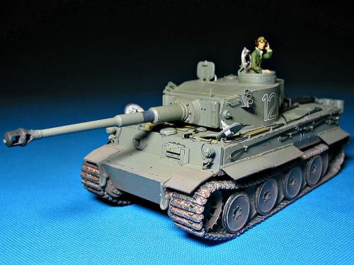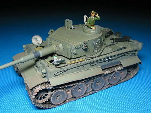 威龙最近出的新版虎I坦克(初期型,晚期型)让这个模型界已经经典的话题友焕发了新的生机。 CYBER-HOBBY是威龙棋下的新品牌,在国内知道的人也许还不太多。他出的坦克模型都是延续了威龙新品的高质量,但是又与威龙的产品不雷同,而且所有产品都是一次性生产,不会再版。大约2年前出了一款非洲军虎I型坦克,白色包装盒(CYBER-HOBBY限量版都是白色包装),材料集合了威龙初期虎和晚期虎的套材,以及部分新零件。现在市场上已经几乎找不到该套材,偶尔再EBAY.COM上可以找到,价格涨到150美金以上(原价50美金)。 言归正传,我参照收藏的CYBER-HOBBY虎I制作了这辆非洲军绿虎。使用的材料如下: 6286-威龙初期虎 PE 35061-沃雅配田宫非洲军虎I蚀刻片 35A11-ABER非洲军裙板及排气管保护罩 FM初期虎I金属履带 自制树脂储物箱 树脂兵人 部分田宫零件