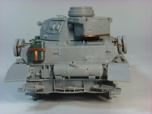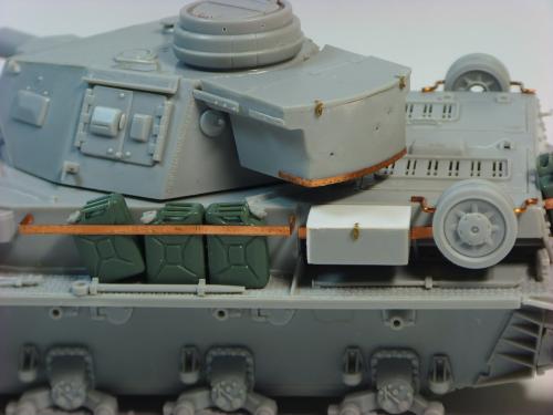 1 以实车为样本改造L43炮 加长尾段 追加焊缝和螺栓孔 改造炮盾与机枪座 2用PE及铜片改造车尾储物箱 增加铆钉及战损 3增加指挥塔排水孔 仓门改为活动 4增加炮塔铆钉 重做焊缝追加小细节 5全车零件适当打薄 追加焊缝与气割痕 6以铜片铜丝追加非洲军常见的挂架若干 并改造了挡泥板固定等小细节 7排气管战损 及车尾小细节调整8轮圈追加磨损 9使用T的油桶等外挂为作品增色