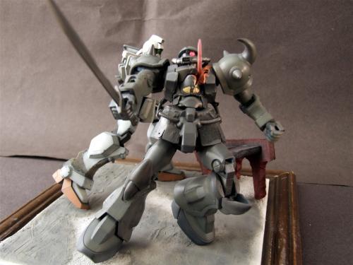 场景的整体构图很好,老虎被吉姆的光剑切入的创口对与1/144的比例来说也是细致的,机体的细节也很丰富.但美中不足是地台细节不够,地面处理较草率,希望能看到更精彩的后续场景作. |
