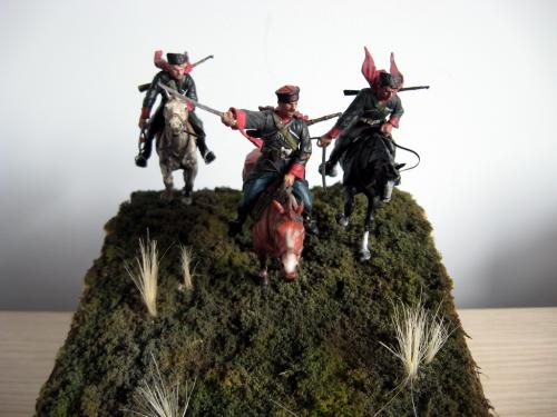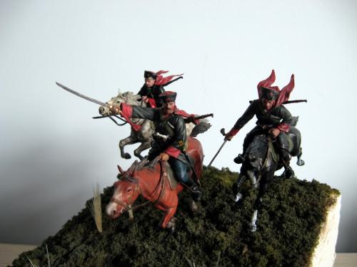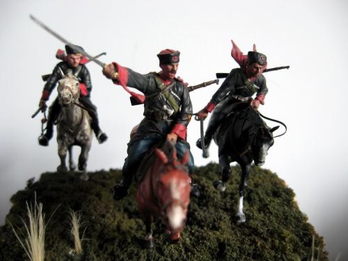 原本打算做龙的二代兵,后来发现场景构思有问题,搁置很长时间后发现离最后日期只有一个多星期了,不得不临时改成了红星的哥萨克骑兵,时间很紧任务重,不足之处望大家谅解。由于不存在盗版问题,就没拍封面和版件。另外改造方面只是增加了马的缰绳和挖深了兵人的袖口,做了一个小地台。最后,我想说很感谢举办这样的比赛,不然我这盒模型不知要等到何年何月才能动工完成呢~