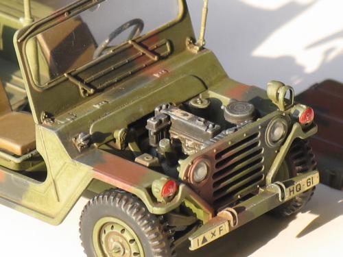 爱德美的新版M151A2,直做无改造,(不知道钻枪管和排气管算不算.)细节感觉还是可以的,比田的同类产品要好,毕竟是新开模的嘛,不过组合度不是很好,推出孔比较多,那水贴就~~~地球人都知道! 第一次参加比赛哈~~~还有很多不懂,望多多指教!