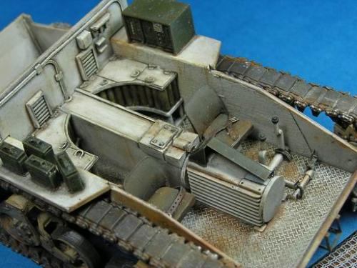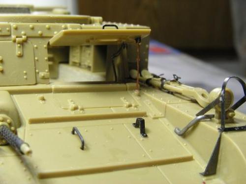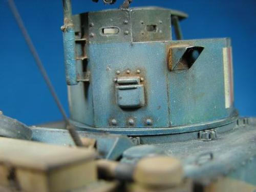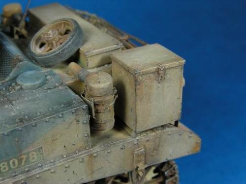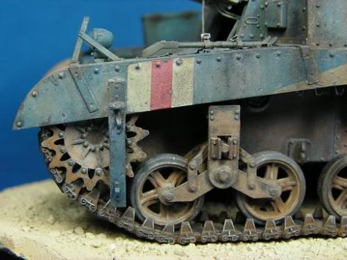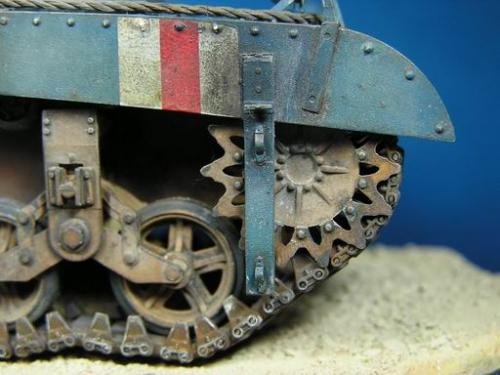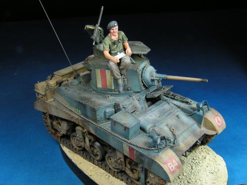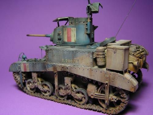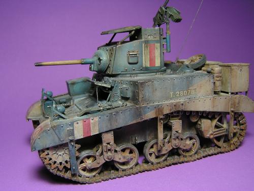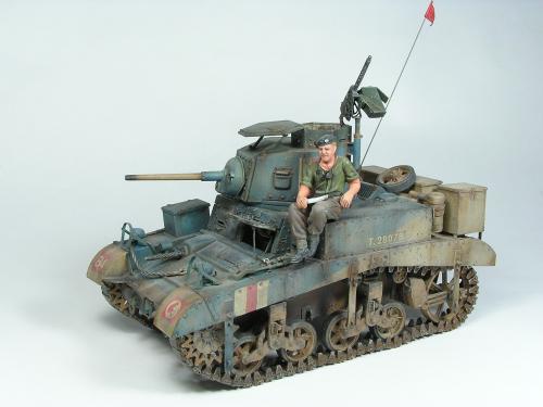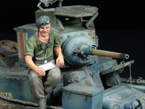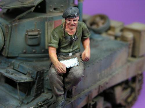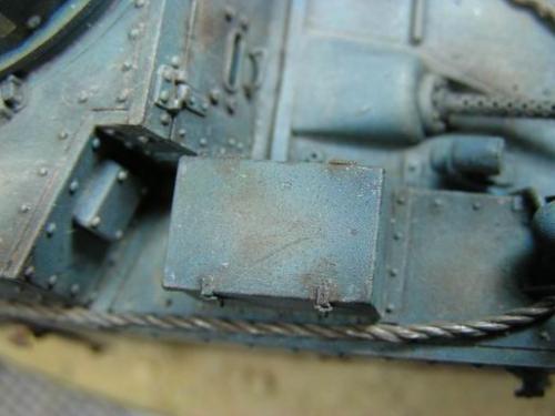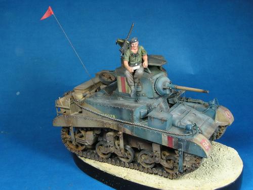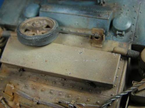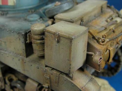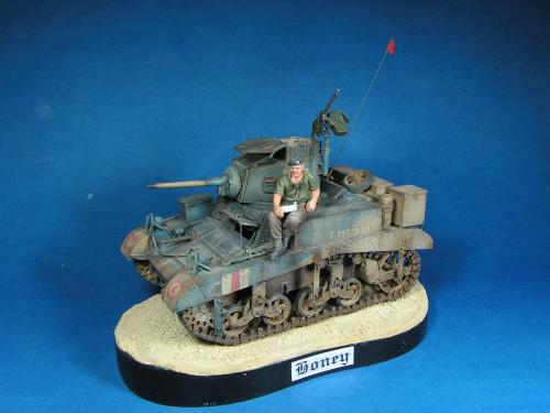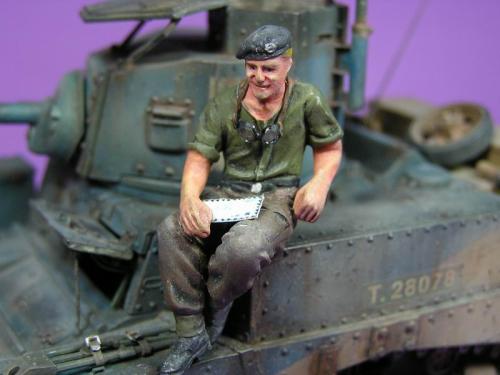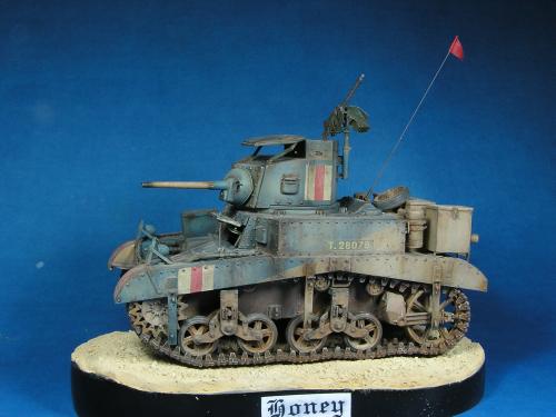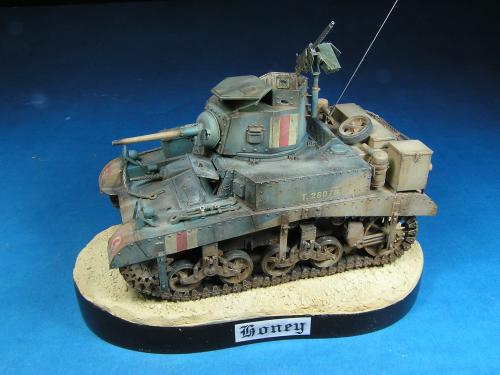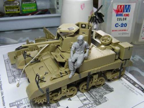 总算做完这个模型 偶也如释重负 为了爱好而做模型是快乐的 为了比赛而赶模型是痛苦的 发誓不再为了什么比赛而赶工了 模型开工于两周前 套件用的爱+牛的组合 开始PE的制作还很愉快 但由于其数量众多(一共有3大张)越到后面越烦心 差点有阑尾的冲动 好在自己忍了忍坚持下来了 上色方面没什么好说的 就是画掉漆累人 掉漆一共有两层分别为主色的浅色划痕和接近烧铁色的完全漆面脱落 虽然偶已经尽量画小 但由于经验不足 很多地方还是显得不够自然 加之后面的天然土旧化 有些都看不明显了 旧化方面偶尝试了多种技巧 依次用了滤镜 色差 局部洗扫 天然土 这里我想说一下的就是花在旧化上的工时的问题 很多朋友看见高手的模型觉得他们旧化很真实 自己做起来却不得其法 其实这是一个时间的问题 不管你技术水平有好高 但时间与结果成正比是永恒的真理 这次偶就花了以前两倍以上的时间来做旧化 虽然比高手还有很长的距离 但自己明显感觉比以前效果好 不过由于开始旧化的方向有错误 导致最后的视觉效果只算是差强人意 最后说一下这个人物 可能是赶得太急的原因 (昨天画好的肤色)已经喷了3次消光 但人物还是有点亮(失败呀)偶设定的是这位年轻坦克手在休息时拿出了远在故乡的女友寄来的信 回忆起过去的美好生活 不由得会心一笑 以次反衬战争的残酷 所以地台上的《HONEY》也可唯是一语双关 偶更是希望通过这个人物 表达出同样生处异地的我对我老婆的思念