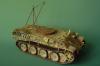 本次制作使用的是 威龙6160 豹式D型 ICM 35341 豹式坦克抢修车初期型 沃雅 1/35 德豹式坦克D/A型防爆网 两盒模型凑成的一辆中期型豹式D维修坦克 此种维修坦克在库尔斯克会战后到1944年初期在德军中使用,后来逐步被豹A底盘的抢修坦克替代. 在制作中的主要难点是上主舱盖木色的处理和资料的查找,根据现存资料,选择了早期型和中期型交接,还没有改装前舱盖的版本,木色使用田宫皮肤色打底,用油画棕色渍洗和干扫,模仿木制表面;用KMY的1mm铁环替代了吊钩,用沃雅改件加装防爆网,使用田宫漆喷迷彩并用MIG土做粉处理,感觉本次喷迷彩过淡且密度大了一些,在以后的作品中需做进一步的调整.