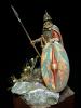 这款凯尔特人是小弟买的第一个金属兵,也是做的第二个金属兵,属于毕加索的绝版产品.版件还是一如既往的精致.制作中做了改造,脸部左侧用AB补土塑造了眼罩,左手腕部用纱布塑造了缠布,右手握矛角度做了调整,觉得官方笔直的角度无法表现其气势,稍稍呆板了点.整体用AV和丙稀上底色,油画颜料做效果,MIG土作粉尘.用石膏做了地台,加上平时搜集的杂草