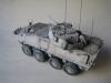 我这次使用的是号手的LAV25剪刀鱼套件,用漆包线加固了炮塔后拦网,用针灸针替换了前天线,其他直做。 全白涂装难度大而且经验不足,我是全车整体喷黑,再用消光白薄喷全车,再利用漆层厚度来突出高光和立体感,完成后用黑色和棕色法郎漆滋洗全车,干后用白色珐琅漆干扫车体细节。 由于是现代战车,所以轻微点了少量掉漆,轮胎用AFV的城市灰天然土色干扫,再用君士的消光漆固定。全车再用沙黄土色和白灰色土稀释盖喷,最后消光完成。