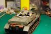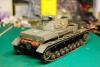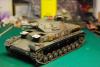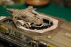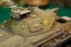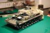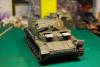 在此比赛开始前,已经开始素组,本来打算做黄绿斜条纹迷彩涂装的,更能突出其C型的特点,个人人为是C型中最好看的涂装;但是为了迎合比赛,改为德国灰单色涂装。由于是单色风暴,笔者认为比的就是色差,所以在主色的喷涂分色上花了大量时间,在产生阴影的部位预制黑色阴影,之后喷涂田宫水性漆,由德国灰+田灰+浅灰+深灰调制而成,现在看来颜色不太准,偏浅了,也可能是高光加白太多了,喷好主色后,在原色中加入少量的黄色和白色,分2个层次喷高光,每个层次加入的黄和白呈阶梯式递增。主色干后,上水贴,喷郡士光油,用来做旧化前的保护层,之后,滤镜,渍洗,渗线,履带尘土。