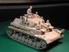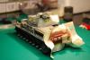 龙6291,几乎是直做无改,唯一的改动是在前大灯,用了反光性质好的材料在灯内部,可以增加大灯的整体效果。采用龙本身自带的蚀刻片。个人认为这样的板件已经足够细了,总零件超过1000,况且附带了比较丰富的蚀刻片,所以没太大必要再去购买其他的升级套装,直做就能很好地体现细节。详细的板件评测请点击链接:http://www.imx365.net/bbs/thread-101983-1-1.html 作品设定为战前的某一天,士兵在休息待命,无聊中喝喝小酒儿,由于是非战斗状态,弹药,油料等补给还没装上车,坦克处于比较轻的重量水平,所以悬挂比较高,履带也就比较紧一些,只做了微小的履带下垂。由于是战前,整车处在非常好的状态,随车工具等附加零件一应俱全,几乎全部舱门都处于打开状态,车上也只有轻微的尘土,只有左翼子板前部因为经常受士兵踩踏有轻微变形,左前挡泥板设置成打开受检查状态。 本来打算加6个装甲兵人的,但是没想到暑假时间太短,还需要同时完成毕业论文,还有杂七杂八的事需要处理,父母也不支持,所以模型时间受到大规模挤压,兵人只素组好,没开始上色。主角四号C也欠缺很多,没做掉漆(自知水平不到),履带颜色处理的不够,排气管也只上了基色,具体的锈色打算mig土最后扫一下,负重轮中间涂装有些穿帮,整车看起来还是有些反光,油油的,还未消光处理。照片照得也不行,没有好的背景材料,没有足够的白色灯光,没有足够好的摄影器材,当然最主要的是本人水平菜。