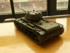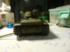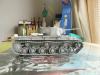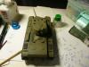 本作采用号手套材,令选用沃雅蚀刻片及一些废旧材料进行改造.具体如下:采用蚀刻片改造防爆网,工具箱,手枪射击口;用针管替换航向机枪;用流道拉丝制作焊接纹;用牙刷蘸胶水刷出炮塔的铸造痕;考虑到kv通常成为众矢之的,用电动工具在炮塔上制作了小口径火炮轰击后留下的弹痕.
