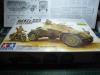 套件是田宫35286,早就入手的东西和威俊比已显落后,单套件给出的兵人还是不错的,这盒222是田99年作品,组合度一如既往的好,只是小零件上不太突出罢了,本车笔者只是换了附加油箱架,别的几乎直做,挡泥板薄板用薄纸片制作,加了灯线(不怎么看得出来)整车制作好后觉得尾部特土于是加了一个小箱子,整体看着好了很多。田宫的给出的水贴说明很讨厌德军十字正好在附加油箱下面,给制作带来小小麻烦。兵人用了一个别的非洲军人形使得在车里的兵人目视方向更自然些。上色用的田水旧化方面山寨滤镜法白色居多,主要表现出退色感觉,最后用粉彩修饰下底盘。本来想做个场景搭配的,这段时间一直很忙实在来不及了,意思一下,各位上眼了。