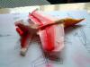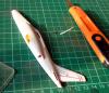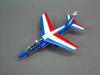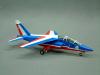 环球81年的版件+胶板+补土+郡士油漆 我们公司和法国领事馆是邻居,法兰西巡逻兵飞行员就住在附近的酒店,中午我们还和他们在一起吃饭所以弄到了预演和正式表演的门票。又从法兰西巡逻兵的随队摄影师处弄到了大量的法兰西巡逻兵的照片。 对比版件线图和照片发现版件的机翼部分与实机区别较大。版件为宽凹线缺失许多细节线条,主翼尾翼翼型完全不一样且没有提供发动机喷口这些只有自己修改追加,将线图缩到1:72复印多份再分别裁下机翼纸样贴在版件上供修改和刻线参考用用纸遮盖出机翼下的字样再喷蓝色由于水贴的年份久远除队徽和部分文字外全机采用遮盖喷绘。