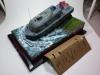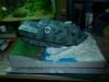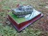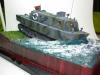 选取威骏35015德国水陆两栖车中期型为题材。制作了一个由岸边到水中的动态场景。 制作过程中,首先对车身进行了内构涂装,外部实线迷彩涂装,渍洗,掉漆,流锈等旧化手法。 然后制作地台,制作难点在于波浪的动态形态及颜色变化。此作品制作后,使我对水及波浪的制作有了一定的经验