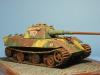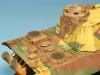 若是说德军的图纸战车,当数E计划。E系列包括E10,E25,E50,E75,和E100。E-100小弟已经制作过了。这次制作的E-50所须改造很多,对小弟是个挑战。 E-50是德国人设计的标准战车,E-50重50吨,计划取代“黑豹”.E-50的综合防弹能力比黑豹F提高了50%左右,它采用和黑豹2型一样的加长型的88炮(虎王上的88L71炮).车体共6对扭杆12组负重轮分两层排列。而普通的黑豹(A,D,G)车体8对扭杆,16对负重轮分3层重叠排列。E-50车体细节多似虎王。 这次小弟以黑豹II(龙6027)为基础,复兴E计划的主干E-50。黑豹II大概是最接近E50的战车了,他不仅拥有和E50相同的炮塔和火炮,履带,路轮,齿轮,和诱导轮也都和E50相同。 1,在车体下部打孔,填补不用的孔,把原来的7对路轮改为6对 2,填补机枪口 3,切割前泥瓦 4,磨平原来的工具扣,换用沃雅的蚀刻片。 5,把所有的把手换成合适的铜丝和铁丝。 6,用胶板制作了裙板的连接口 7,补土戳出指挥塔和炮盾的铸造感 8,用刀加深钢板切割痕。 9,在前装甲增加车灯,和电线。 涂装上采用的是硬边三色密彩,充分掉漆(点的真过瘾),洗,滤镜,扫,履带大量锈蚀,排气管烧蚀色用粉来完成。 完成后,发现还是豹味太浓。也是个遗憾了。 400多K的照片,评委放大看