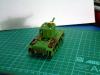此车属于1942年7月蓝色方案开始时的布良斯克方面军第7坦克军第3近卫坦克旅的一辆KV-2。 KV-2型坦克装有1门M-10型152毫米榴弹炮。之所以采用这样大口径的火炮,其目的是为了能够摧毁敌方坚固的防御工事(譬如芬兰的曼纳海姆防线)。但这也使坦克的炮塔变得特别巨大,不仅导致车体行动不便,而且看上去宛如一个立在坦克底盘上的小房子。因此就有人给KV-2坦克取了一个不大文雅的外号“公共厕所”。 使用套材为PST No:72017的1:72系列苏军二战战车--KV-2。中途又购得PART的蚀刻片用来加强细节,工具箱、翼子板支架、进、排气口网罩、炮盾防雨罩等等都是蚀刻片,原蚀刻片的登车扶手太薄弃置不用改为铜丝制作。最精彩的是发动机盖板上的提吊环也可改为蚀刻片还是可动的。152MM的炮管和拖曳钢缆为老熊提供的金属炮管和铜丝缆绳。PST的板件组合度不错细节尚可,大量的蚀刻片的处理是整车的难点,1:72的蚀刻片十分细小,花了我大约一周的业余时间处理。但完工后效果的确不错。 在上色处理时先喷底色,在喷郡士的苏军早期绿,采用滤镜法渍洗后,又尝试用新购得的天然土再做一遍滤镜旧化。包括底盘、履带、车轮的泥污,发动机罩、进、排气口上的油污,整车的锈痕,整车混色。拍照时天气不好影响了效果大家见谅。另外PST的水贴纸质量不是很好也影响了旧化效果。 整套模型耗时约3个月时第一次尝试1:72的战车蚀刻片和天然土旧化技术的使用,希望大家多多指正。