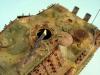 上色:全部采用田宫水性漆 沙漠黄是XF60(45%)+XF57(30%)+XF2(20%)+XF64(5%) 橄榄绿是XF67(50%)+纯黄(5%)+XF2(15%)+绿色(20%)+北约黑(10%) 红棕是XF64(60%)+上面调好的沙漠黄(30%)+XF2(10%) 用深灰色上胶轮缘,用防锈油色来上钢轮. 旧化: 先全车来一次滤镜,这次是以扁黄为主,所以黄色的油画颜料上多点。 然后是粉彩轻洗出部分积尘,干扫。用浅黄,浅绿点画掉漆,然后用黑棕色有选择的点涂在刚才的部位上,其他某些部位也点一下。并画好工具的木柄。 然后用油画颜料洗出部分的流锈和水痕。给新画好的工具木柄也洗一下。 排气口的消焰器先涂上X10枪铁色,然后涂上开得比较稀的棕色,扫上各色粉彩。然后用溶剂化开、洗涂,让油漆和粉彩充分混合,得到真实的腐蚀效果。 我看见有些同好吧尾喷口全部涂成棕色那是错误的,因为到那种程度的车不是报废了就是被击毁很久了。 给路轮和履带上粉彩。每个轮所用的颜色都不近相同,这样可以得到丰富的色彩变化。 用铅笔在车上的掉漆处,履带,工具的金属部分,钢缆画上点金属质感就大功告成了。