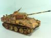 德国二战时期著名的战车,对许多现代的主战坦克,都有着深远的影响。 该作品是应用上海威龙编号9045的产品。本来是能做成夜战型的,但是根据考证,只有D型才装备全套的夜战装置的,所以就放弃了夜战装置。 本来这个套件就不是很好。特别是履带部分是光受非议的。 考证和改造: 本次制做参考了德军希特勒青年警卫队参与巴拉顿湖战斗的豹G,但是涂装却是自己喜欢的光影迷彩.我改了部分活动履带,(因为有些履带板有严重的缩水现象。想改全动都难)并镂空了所以的履带齿。指挥塔的仓改也改成活动的,火炮行军支架也是用打孔穿轴的方法来改成活动的。记的以前在论坛上看见一辆豹G是钢轮和胶轮缘负重轮混用的,于是翻吃猎虎多余的钢轮为其装上,当然要做一定程度上的修整才能完全能安装到位. 自己动手用铜片做出履带挂钩,观察口的防护片,钢缆鼓动支架,裙板支架,尾喷管消焰器支架,前挡泥板支架,火炮清理杆收纳筒的两个把手,以及发动机仓盖上的部分细节。 用不同规格的铜丝做扶手,车前的幸运马蹄铁,针灸针+6号针头做出跟现实一样逼真的天线。 千斤顶枕木旁边的细钢缆支架龙说明书上要求是横着贴上去,但是看了田宫的豹G和众多高手的作品都是直的,所以改了,并用铜丝缠绕上去冒充那细小的钢缆。用自行车的刹车线来做出钢缆(绝对的钢缆啊!) 下了苦功夫来减尼龙网(减了好几十个才有这几个好看点的),因为买不到相关的蚀刻片防暴网,但是又不想空着,并用烧热了的大头针来做出网的损坏。这也是铜质蚀刻片防暴网比较难做到的效果,追加发动机暖风装置的铸造篇号 。 最后是用沃涯出品的德军工具扣换掉原来肉肉的,所谓的工具扣。