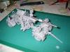 威龙的88mm高射炮 Flak36, 因为小弟在8月开工, 那时候市面还未推出蚀刻片补品, 所以基本直做了事. 改造部份为部份手柄零件以铜枝自制, 以铁丝自制炮膛线, 将说明书上表示要黏死的车轮改成联动的, 工具扣以沃雅工具扣蚀刻片代替. 索组完毕先上郡士1000号水补土, 德国灰涂装, 用的是调浅的田宫水性D国灰, 喷色偏差, 白色迷彩手涂, 炮盾正面迷彩参考龙说明书上的, 其他部份yy, 其他零件手涂上相应颜色, 水贴不多, 本来的白色猎杀环觉得太多了, 剪短一些. 旧化先用黑褐二色油画颜料渍洗, 滤镜, 点掉漆流锈, 特别一提是车体上的刮痕真的用刀尖刮, 线条幼细效果真不错. 最後以天然土抹上泥尘就大功告成~