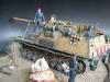 历史背景: 负责研制和设计的公司为丢特茨-埃森威克公司,研制工作于1942年初开始。第一批产品 于1942年10月制成。到1943年5月,共生产了100辆。“犀牛”的总产量为494辆。最初德国军方准备命名为“大胡蜂”(hornets)自行反坦克炮。但是,希特勒不喜欢“以小虫子来命名装甲战车”,并亲自命名为“犀牛”自行反坦克炮。可见希特勒对这个“犀牛”还是相当重视的。“犀牛”自行反坦克炮的战斗全重为24吨,比基型车TⅣ坦克重了4吨多。乘员为4人。车全长8.44米,车体长5.8米,车宽2.86米,车高2.65米。1943~1945年间生产的“犀牛”自行反坦克炮,几乎全部装备给德军独立重型坦克歼击车营。先后装备“犀牛”自行反坦克炮的德军部队有:第560重型歼击坦克车营、第655重型坦克歼击车营和第525重型坦克歼击营等。这些“犀牛”自行反坦克炮,多数用于苏德战场(东线),也有一少部分用于西部战线及意大利战场。 制作心得: 这个龙的犀牛是多年的烂尾,板件不太好,地盘有些变形,细节还算可以。丢失了一些小零件(比较郁闷)。旧化的时候没有做太多考证(资料太匮乏)。感觉有些旧化过了(最主要还是技术不行)。 上色及旧化: 漆用的是魔王的沙漠黄,喷了偏差。掉漆用的是德国灰。先用油画颜料加ZIPPO油洗,再用粉彩扫。考虑到背景是沙漠干旱少雨就没有做太多流锈。 改造: 把手用铜丝替换,改造了车内弹箱,追加了前车灯的灯线,追加了炮支架的压簧还有车内的杂物架,添加了一些补品(补品是爱得美的),头盔是用VCD的外包装自制的。酒瓶是用流道加工的。水桶是用易拉罐皮自制的。配的龙的兵人。