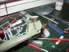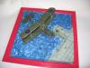 这是本人第一次参加比赛.以前是做爬虫的.医学生的大四是很紧的虽说比赛时间有两个月但是对我来说只有五一的三天.环球的JJ想必大家也都知道什么样子.网上关于该机的资料全无.真是无比郁闷.全机改凹线,由于舱内一点细节也没有所以自己加了地板仪表所有座椅重新制作.发动机加了管线.由于其发动机的特殊布置加上套件的组合不佳导致所有支撑杆全不能用因为根本对不上.用200电话卡,铜丝,X光胶片等一一作出.由于透明件碎列部分窗户用饮料瓶追加.机身上的窗户也钻开贴上透明的塑料片(因为用502加固机身导致起雾惨啊!).起落架也基本为自制.由于其特殊的外型也使得涂状难度大大增加(其中有打算放弃比赛的念头).水贴纸由于年代久远也全部碎裂!!用尼龙丝袜拉的线以前没做过所以经验不足效果不好!.此次模型制作挑战还在于首次制作水面.玻璃胶的气味太大差点晕过去.作出的效果十分不理想.因为做爬虫多了.最后竟然把飞机干扫了一下.不知道怎么想的.各位同好们若有什么建议不要客气.拍砖就是.