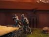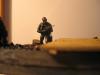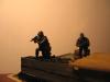 用纸做背带 皮带 再扎出扣孔 煤油洗洗 前半件要和后半件粘在一起还满麻烦 一方面那个潜水包要卡在那"马甲"中 另外就算没那个挂胸前的潜水包 前半件也不能和后半件接和得很好 要用很多补土 还要打磨点点 最后用条带子扎孔后将两边连起来 整体为亚黑色 用田宫XF1手涂 潜水衣和潜水鳍用XF1和XF69混合 潜水镜XF67 手套XF67 潜水镜内肤色XF15 双眼画眼白点珠 用褐色渍洗全身 最后表面稀层光油