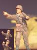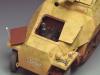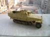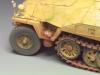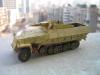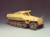 龙的251三合一,做的是251/9搭在短75炮型的。龙的模子开模比较琐碎,但最后完成效果还是不错的。最近看了很多日本模型高手的作品,作品大多属于所谓的“唯美派”风格,远看十分干净整齐划一,今看却是在细节上做足了功夫。小弟很是喜欢这种风格,也就着这次机会试着模仿了一般。也试着挑战了一下黄底上绿褐细条纹涂装,条纹不仅要细,还要表现的若隐若现。小弟没有0.2喷笔,用0.3的小心翼翼的喷了4个多小时...最后效果还算满意^v^...由于251/9内部少了两排座椅后显得十分空档,小弟加了一些随车用具,加了个发动机,并制作了3个兵人使作品更丰满些。兵人,黄色的为田宫251里的,动作协调,细节欠佳,换了树脂人头后有较大空袭,用补土添上并刻出纹路模仿毛衣,并追加了勋章和臂章。灰色的为龙的一代兵,细节很好,但动作僵硬,如直做人脸就朝下看地了...换了树脂头不说还要在躯干上进行一番修整,随身配具换成龙2代兵里的。 很多日本模型高手的作品里,在钢板的表现力上做作了文章。不光光用虑镜手法来表现层次感,更多的是用000号小笔在面板上点划。小弟在此也试了一把,虽然很累,但效果却是不错。(车体侧面细节那张)