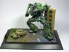 扎古II的细节处理很好,旧化比较得当,战车的细节补充仍需加强,地面以及房屋对于这个尺寸来说显得有些单调,