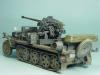 二月月赛主题是敞开战斗室的突击炮。选了好久,觉得1吨半50毫米PAK38自行反坦克炮撞车的可能性应该很小。这是意大利的套件。大部分是直做,在一些小地方自己加细改造:使命的蚀刻片改了几个随车工具的固定扣、备用油桶架用蚀刻片下脚料改造、挡泥板后部的工具箱(大概是吧)用牙膏皮固定。在喷漆时,发现右侧观后镜架不见了,于是利用流道拉丝重新做了一个,没看出来吧。这次我选择全车喷德国灰(因为后面要做几个德国灰,就当这是实验),我把德国灰调得很淡上色差,洗了以后,我觉得颜色才刚好。如果调深了,洗了之后整体会发黑。而实际使用,由于保养和战车使用环境,漆面也会褪色的。旧化用粉彩简单处理了一下,加了两个箱子和步、机枪。各位看官,拍吧! 希望大家多多的参加月赛来捧场哦!