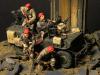 使用了意大利的SAS突击车,龙的SAS队员。稍微车辆的悬挂做了点修改以增加重量感。车上堆积了点杂物和枪支(大多是套材自带的)这个作品在构图上多借鉴了日本高手崛川哲生的作品。墙壁和地面都是小弟用石膏自制并无难度。2楼的楼板由木条自制。弹壳是铜丝剪的。SAS队员的红色蓓蕾帽是此情景的亮点。情景的内容是:1945年3月25日-5月3日 第1特别空勤团和第2特别空勤团在德国本土的莱茵河东部至基尔一线,开始使用重武器装备的吉普车作战。 一个SAS小队深入敌后进行侦察任务。谢谢观赏(请点开看大图)