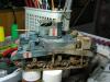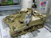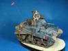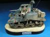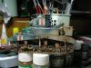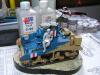 总算做完这个模型 偶也如释重负 为了爱好而做模型是快乐的 为了比赛而赶模型是痛苦的 发誓不再为了什么比赛而赶工了 模型开工于两周前 套件用的爱+牛的组合 开始PE的制作还很愉快 但由于其数量众多(一共有3大张)越到后面越烦心 差点有阑尾的冲动 好在自己忍了忍坚持下来了 上色方面没什么好说的 就是画掉漆累人 掉漆一共有两层分别为主色的浅色划痕和接近烧铁色的完全漆面脱落 虽然偶已经尽量画小 但由于经验不足 很多地方还是显得不够自然 加之后面的天然土旧化 有些都看不明显了 旧化方面偶尝试了多种技巧 依次用了滤镜 色差 局部洗扫 天然土 这里我想说一下的就是花在旧化上的工时的问题 很多朋友看见高手的模型觉得他们旧化很真实 自己做起来却不得其法 其实这是一个时间的问题 不管你技术水平有好高 但时间与结果成正比是永恒的真理 这次偶就花了以前两倍以上的时间来做旧化 虽然比高手还有很长的距离 但自己明显感觉比以前效果好 不过由于开始旧化的方向有错误 导致最后的视觉效果只算是差强人意 最后说一下这个人物 可能是赶得太急的原因 (昨天画好的肤色)已经喷了3次消光 但人物还是有点亮(失败呀)偶设定的是这位年轻坦克手在休息时拿出了远在故乡的女友寄来的信 回忆起过去的美好生活 不由得会心一笑 以次反衬战争的残酷 所以地台上的《HONEY》也可唯是一语双关 偶更是希望通过这个人物 表达出同样生处异地的我对我老婆的思念